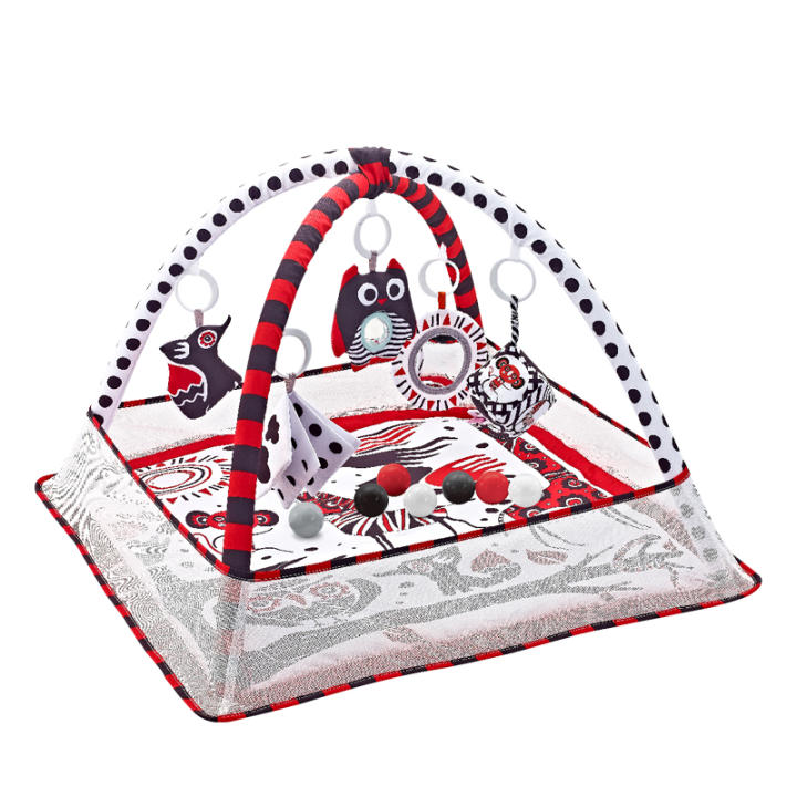 Diseñada para mejorar el desarrollo visual y de movimiento en los recién nacidos, esta alfombra de juego ofrece tiempo de juego educativo.
