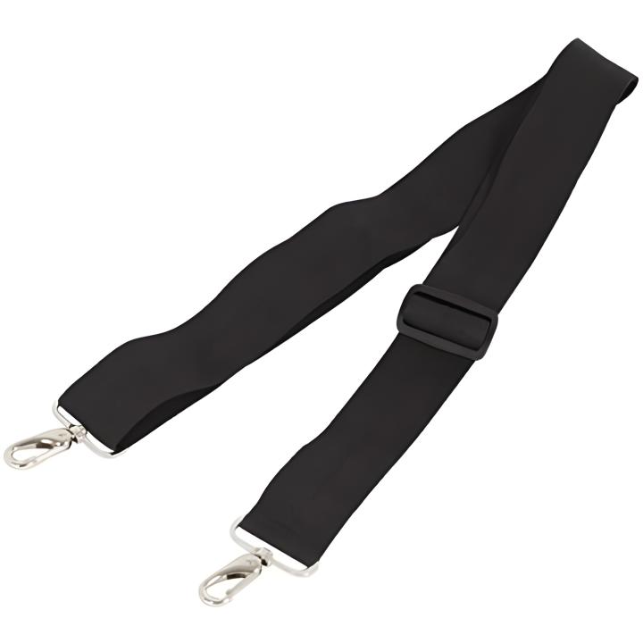 Bandoleras para bombos y otros intrumentos de percusión fabricadas encinta de nylon. Ancho 50mm. Largo mínimo 92cm. Largo máximo 168cm.Dos mosquetones metálicos y corredera.