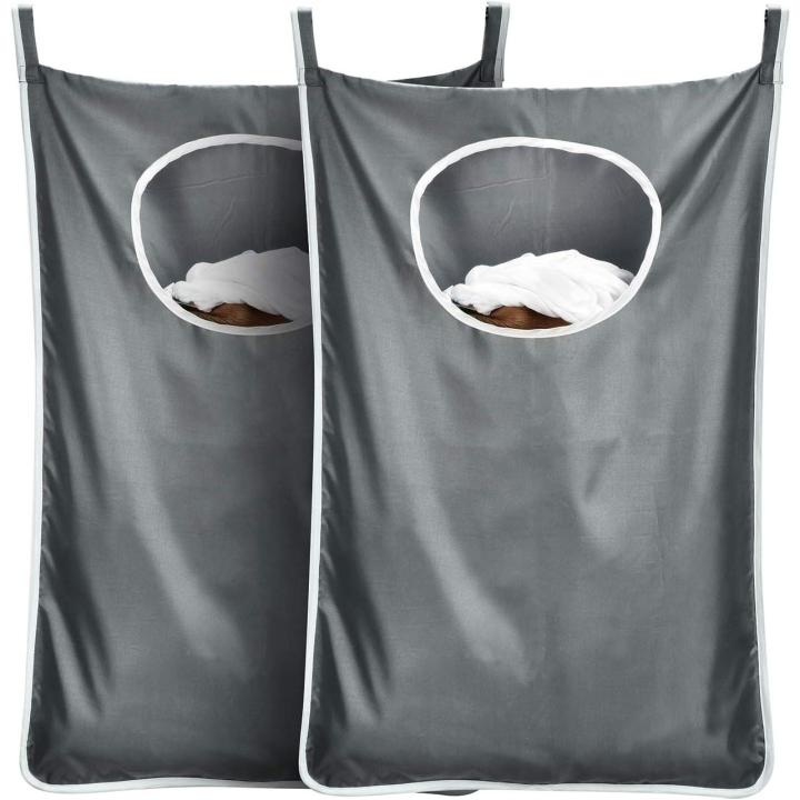 Cesta colgante para ropa sucia, duradera, con gancho de acero inoxidable que ahorra espacio y cremallera detrás de la puerta, ideal para baño, habitación infantil, viajes y dormitorio, paquete de 2 (extragrande, gris oscuro)