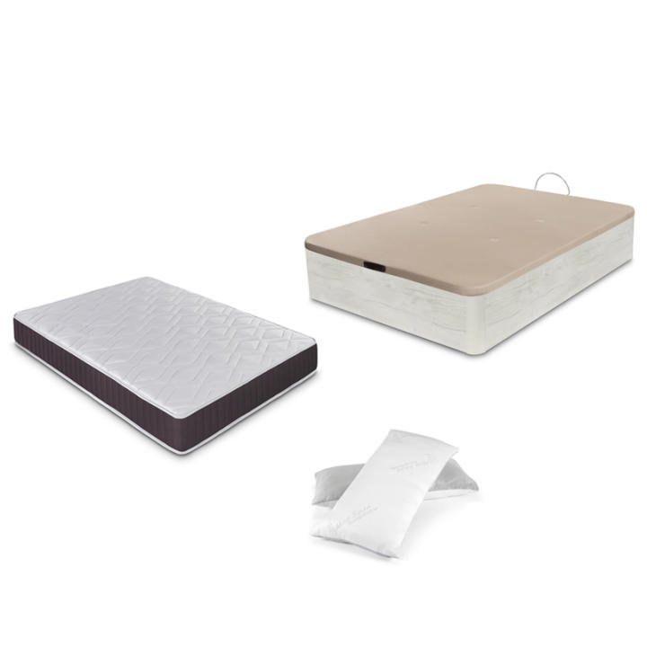 El pack se compone de un canapé abatible en el color que elija un colchón y una almohada todo ello en la medid que seleccione.