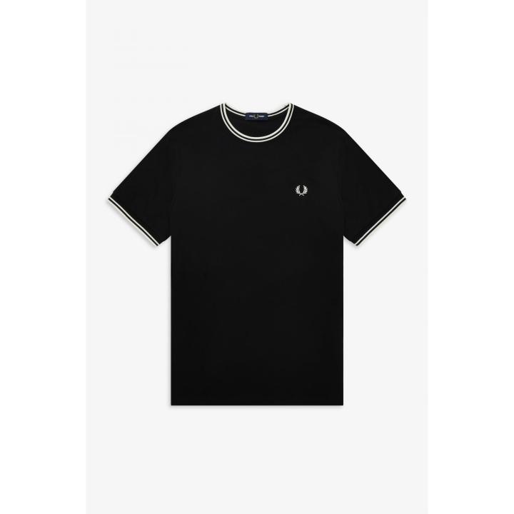 Una camiseta de cuello redondo con nuestro inconfundible ribete con dos franjas en el cuello y el borde de las mangas. Confeccionada en punto de algodón ligero y con nuestro corte recto. Cuenta la leyenda que un cliente de Lillywhites pidió personalizar un polo liso de Fred Perry con los colores de su equipo de fútbol y así nació nuestro ribete con dos franjas. Este elemento forma parte de nuestro ADN, ya que solo nosotros lo usamos en la proporción de grosor 5-4-4. Nuestra camiseta de cuello redondo, diseñada con nuestros inconfundibles detalles, presenta el ribete con dos franjas y la corona de laurel bordada en un color a juego. Absolutamente Fred Perry.