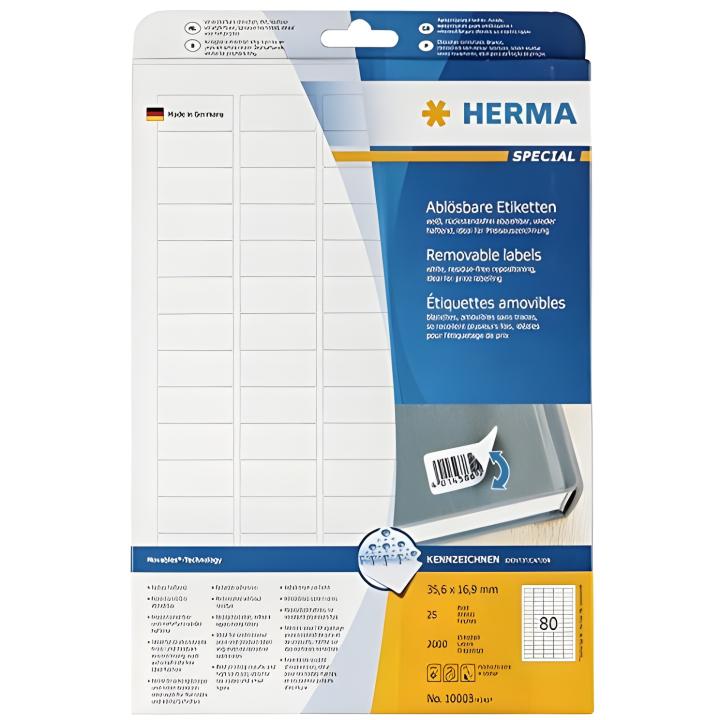 Herma Labels white removable 35,6x16,9 SuperPrint 2000 pcs. - Etiquetas de impresora (Color blanco, Labels/pack - 2000 pcs. Sheets/pack - 25 pcs, 35, 6 x 16, 9mm, A4 sheets, Removable)