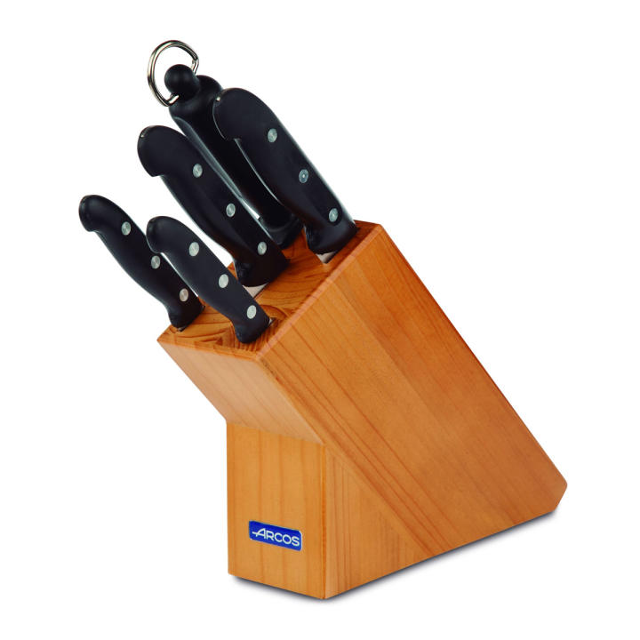 Taco con 4 cuchillos de cocina de cocina y Chaira Arcos Maitre 152000, mango de polipropileno, hoja de acero inox NITRUM