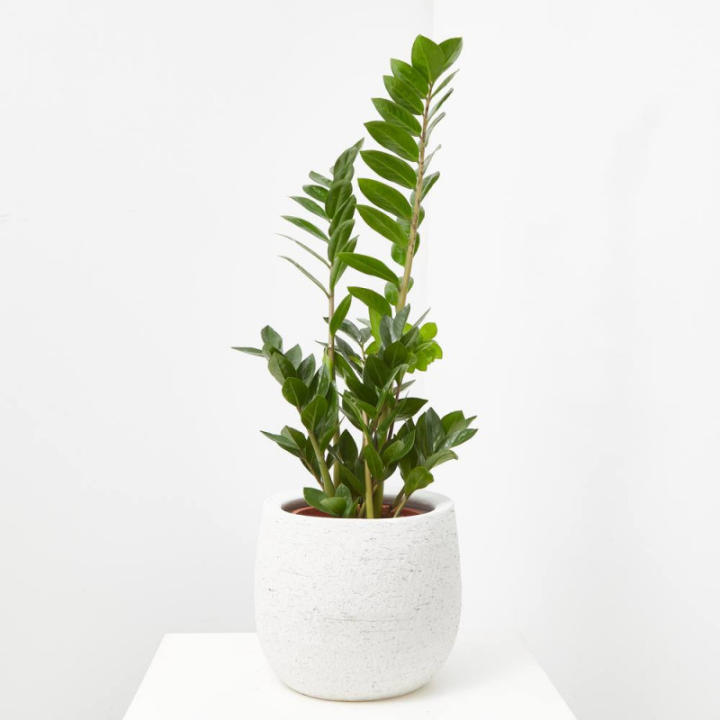 La Zamioculca es una planta muy estimada y extendida por la facilidad de su cultivo y por la belleza de sus hojas. Se trata de una planta suculenta siempre verde, y es apreciada por la belleza de su aparato foliar, caracterizado por hojas pinnadas, carnosas, lanceoladas, de un bonito color verde oscuro y muy brillantes. Esta planta no suele superar los 60-70 cm de altura y además tiene un crecimiento lento. Sus flores suelen presentarse en inflorescencias con un color amarillento, pero para que llegue a florecer en el interior de un espacio necesita unas condiciones óptimas.