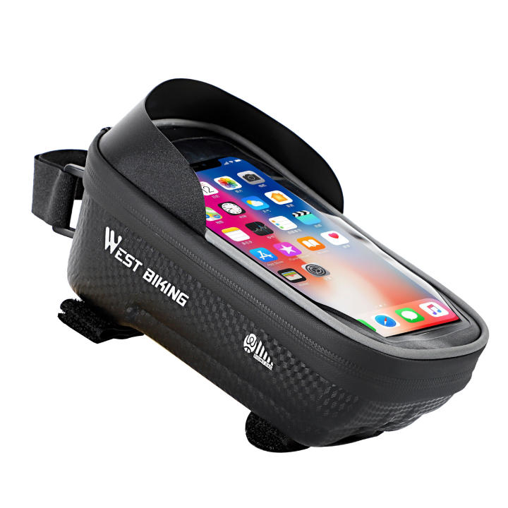 WEST BIKING-bolsa impermeable para bicicleta, bolsa para tubo frontal, soporte para teléfono móvil con pantalla táctil, accesorios para ciclismo de montaña y carretera