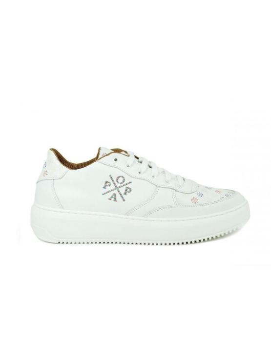 Popa presenta el Efeuno Marca Multi, un deportivo fabricado en piel super suave. Esta sneaker no solo es extremadamente cómoda, sino también ligera, lo que la convierte en la elección perfecta para aquellos que buscan comodidad sin sacrificar estilo. Con sus grabados en textil multicolor, esta zapatilla le dará un toque de estilo único a tus looks. Además, cuenta con una plataforma de 3 cm que te brindará un poco de altura sin comprometer la comodidad.
