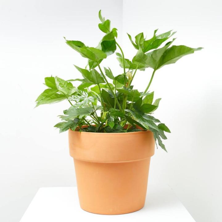 La Aralia o Fatsia Japónica es una planta resistente que puede vivir tanto en el interior como en el exterior de cualquier espacio, siempre y cuando la temperatura sea fresca y la iluminación sombreada. Este género solamente comprende dos especies: la Fatsia japónica y la Fatsia papyrifera. Su forma es de arbolito siempreverde, con un tronco delgado y ramificado, las hojas son grandes de color verde, brillantes y con forma palmeada, mientras que las flores son verdosas formando umbelas con flores blancas.