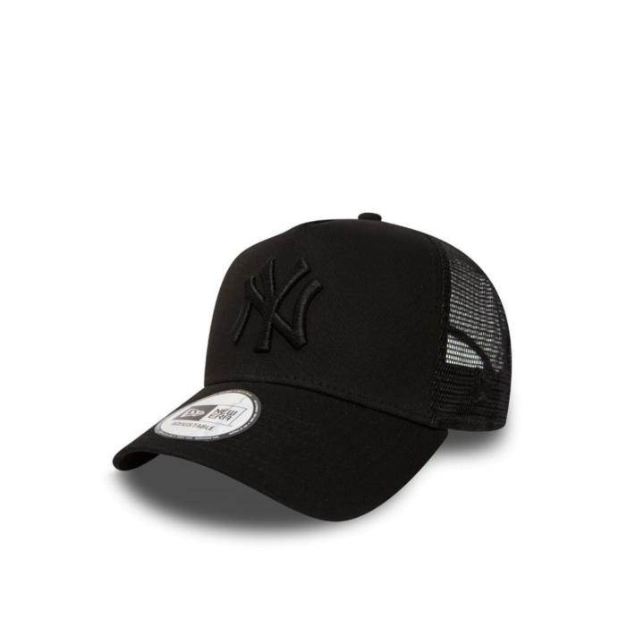 ¡Consigue un look depurado con la gorra New Era Trucker New York Yankees en color negro! : Ajustable y confeccionada para un ajuste perfecto, esta gorra presenta una corona redonda con paneles delanteros estructurados y paneles traseros de malla para una mayor transpirabilidad. : La visera precurvada te brinda protección adicional contra el sol, mientras que el cierre de botón a presión garantiza comodidad y seguridad.