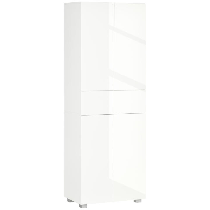 ¿Tu cocina necesita espacio de almacenamiento adicional? Esta alacena alta de HOMCOM puede ayudarte a convertir tu cocina desordenada en una de despejada en muy poco tiempo. El color blanco brillante y el diseño simple combinarán fácilmente con la decoración de tu hogar y agregarán un toque de modernidad. Dispone de 2 armarios con baldas interiores regulables en altura y 2 cajones. Este mueble de cocina ofrece un amplio espacio para organizar todo de manera eficiente y sin complicaciones.