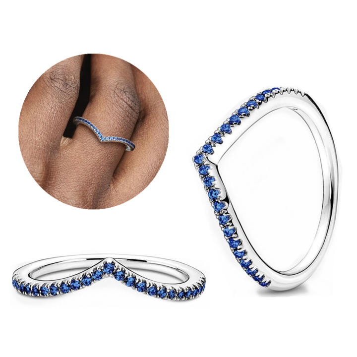 Anillo de Plata de Ley 925, anillo de circón azul con elemento oceánico para mujer, circonita cúbica CZ, estrella, Luna, flor, joyería de boda, anillos, regalos
