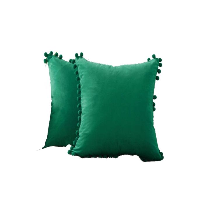 5. SUAVE: funda de cojín de terciopelo de microfibra de alta calidad, suave al tacto, suave, cómoda, hipoalergénica, brillante y resistente a las manchas con bonitos pompones alrededor. Tamaño: 40x40cm funda de almohada, el paquete incluye 2 fundas de edredón, sin núcleo de almohada.