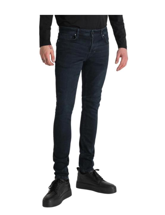 Este vaquero de Antony Morato se presenta en un lavado azul oscuro. Está confeccionado en 'denim power stretch', lo que asegura un ajuste ceñido y cómodo. Incorpora un cierre de botón en la cintura, una etiqueta de piel y el distintivo logotipo de la marca en la parte trasera de la cintura.