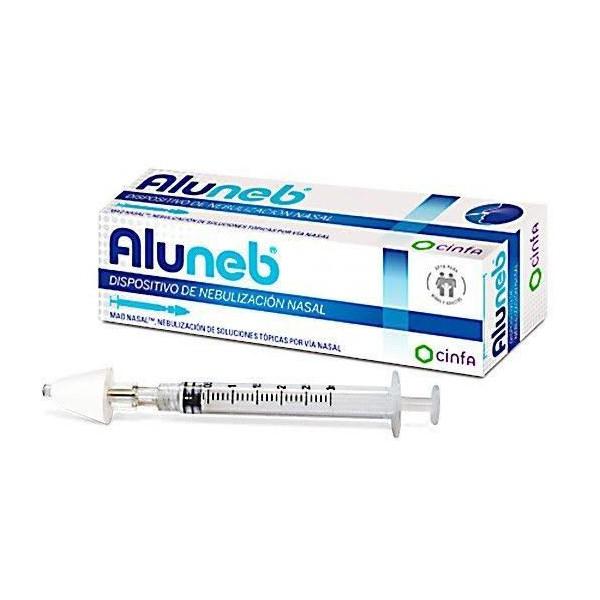 Aluneb nebulizador nasal permite efectuar tratamientos tópicos de las cavidades nasales y sinusales que posibilita la administración rápida de las soluciones Aluneb mediante nebulización en partículas de un tamaño de 30-100 micras de diámetro, ideales para la terapia de las vías respiratorias superiores.