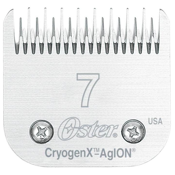 Las nuevas cuchillas Oster para esquiladoras de perros, han sido fabricadas con el más avanzado sistema de protección antimicrobiana: AgION, que utiliza la plata como principal ingrediente activo. La protección antimicrobiana AgION ha sido ampliamente probada, siendo muy efectiva en la prevención del crecimiento de una extensa gama de bacterias y moho. Además, el diseño revolucionario de las nuevas cuchillas Cryogen-AgION, hace que se mantengan frías por más tiempo, multiplicando la duración del filo y facilitando la entrada, incluso en las peores condiciones de pelo. Recuerda siempre limpiar y lubricar las cuchillas al terminar de usarlas. Una cuchilla en buen estado garantiza un buen corte y prolonga la vida útil de la máquina esquiladora. Es imprescindible usar el aceite lubricante para cabezales para todas las cuchillas y, en caso de uso profesional especialmente, es muy útil contar con el baño para cuchillas de Oster. Nota : Se recomienda cepillar bien el pelaje antes del corte, facilitara el trabajo y no desgastara tanto el cabezal.