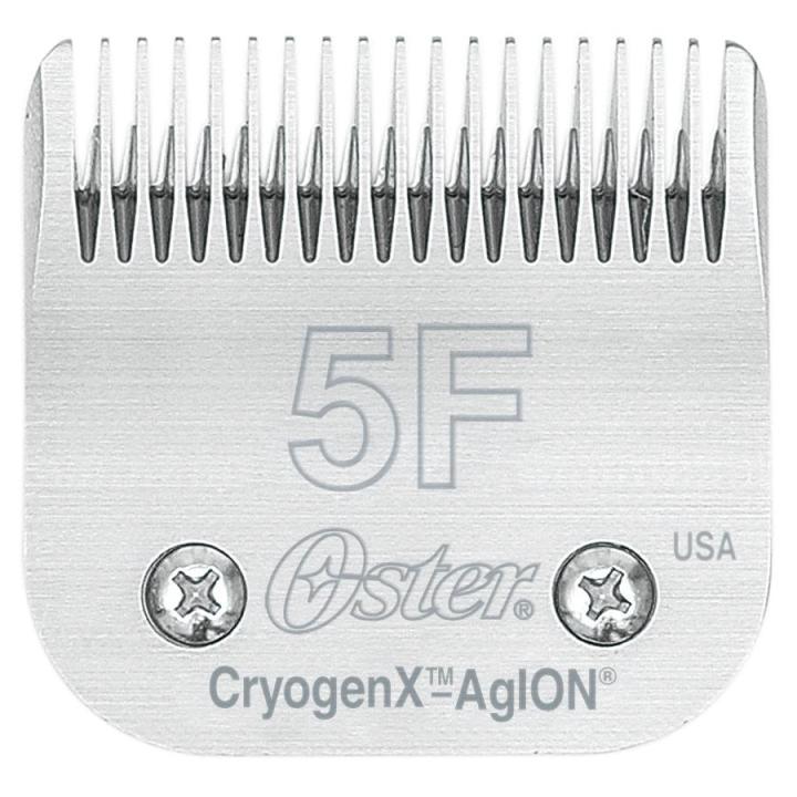 Oster Cryogen-X no. Hoja 5F, longitud de corte 6,3mm. Apto para todo tipo de pelaje. El acero al carbono endurecido criogénicamente de alta calidad y el proceso tecnológico de alto nivel garantizan una precisión incomparable, una durabilidad y nitidez excepcionales. El diseño único de la hoja evita que los animales sufran lesiones accidentales y proporciona un acabado perfecto. Se adapta a todas las maquinillas con sistema Snap-On: Andis AGC, AGC2, Moser 1245, Wahl KM-2, Oster A5 y otras.