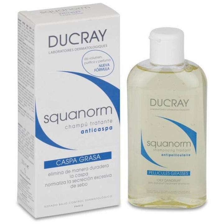 El champú tratante para caspa grasa Squanorm de Ducray es un producto diseñado para eliminar la caspa grasa adherida y normalizar la secreción de sebo en el cuero cabelludo.