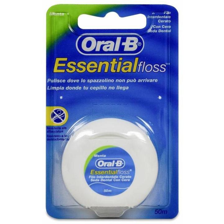 Oral-B Essential Floss seda dental con cera menta es un hilo dental compuesto por un polímero específicamente diseñado para la eliminación de la placa en los dientes.