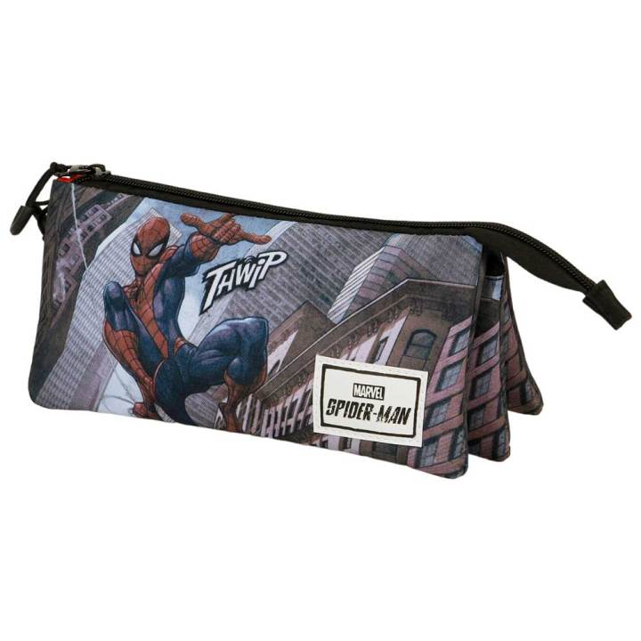 Estuche escolar SpiderMan Karactermania / Dos colores / Triple bolsillo / Poliéster / Para niños y niñas / Para utensilillos escolares