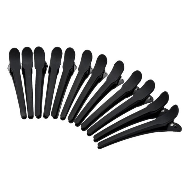 Pack de 12 pinzas de plástico negras de 13 centímetros de longitud.