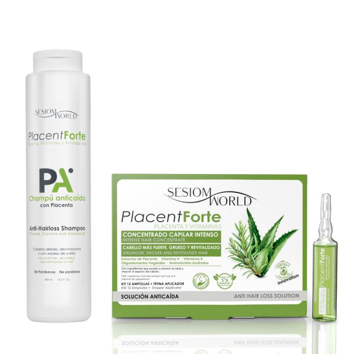 El champú específico PlacentForte está formulado con una base iónica de alto poder limpiador, no agrede el cabello ni el cuero cabelludo y está enriquecido con un complejo de placenta, vitaminas y aminoácidos azufrados que regulan y normalizan la actividad biológica del cabello y cuero cabelludo, acelerando su crecimiento y evitan la caída.