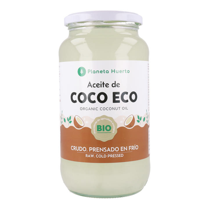 Planeta Huerto presenta su Aceite de coco virgen ECO en formato de producto de alta calidad que te brinda numerosos beneficios para tu salud. Este aceite vegetal, extraído mediante prensado de la pulpa o la carne de los cocos, contiene cerca del 90% de ácidos saturados, lo que le confiere una resistencia al enranciamiento y una duración de hasta seis meses a 24°C sin deteriorarse.