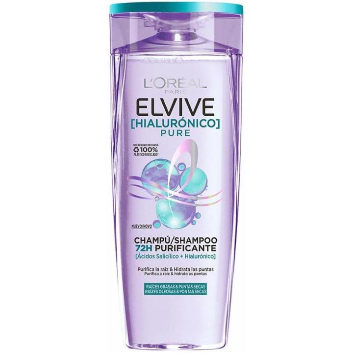 Dale a tu cabello la atención que merece con el Champú L'Oreal Paris Elvive Hialurónico Pure, especialmente diseñado para cabello con raíces grasas y puntas secas.