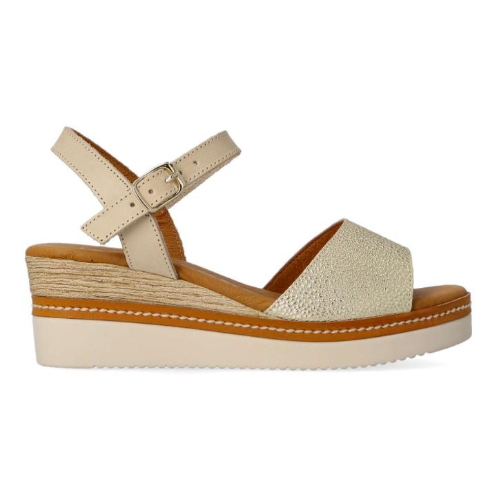 El diseño en color beige-oro de estas sandalias las hace fácilmente combinables con cualquier conjunto. Ya sea para una ocasión casual o más formal, estas sandalias son la elección perfecta. Su planta acolchada brinda una sensación de confort adicional, permitiéndote caminar sin esfuerzo durante horas.