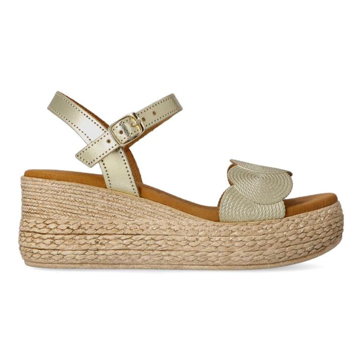 ¡Descubre la sandalia pala cuerda cuña VANESSA de Vanessa Calzados! Esta sandalia cómoda para mujer está fabricada en piel metalizada, lo que le da un toque de elegancia. La suela de goma proporciona una pisada segura y cómoda. Con cierre de hebilla, podrás ajustarla perfectamente a tu pie.