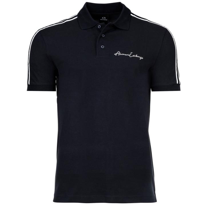 Elegante polo para hombre de la marca ARMANI EXCHANGE. Camiseta monocolor con pequeñas letras del logotipo en el pecho. Cómodo de llevar.