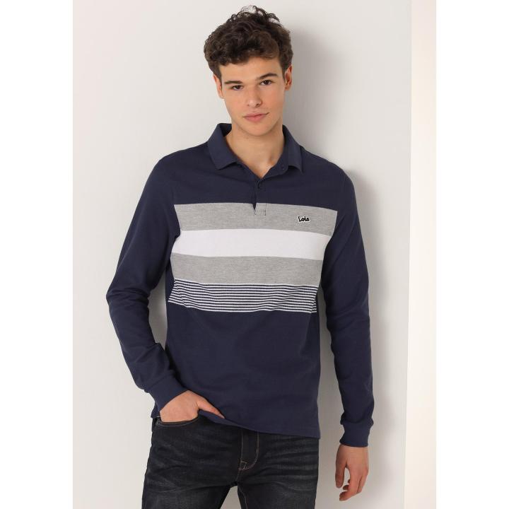 LOIS JEANS - Polo de manga larga con franjas yarn- Tallaje en Pulgadas