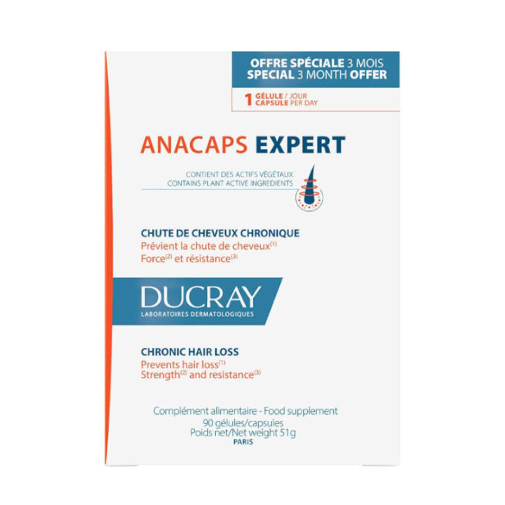 Las cápsulas Ducray Anacaps Expert son un suplemento alimenticio diseñado para fortalecer el cabello y las uñas desde el interior. Su fórmula única combina ingredientes clave que promueven la salud capilar y contribuyen a mantener un cabello fuerte y brillante.