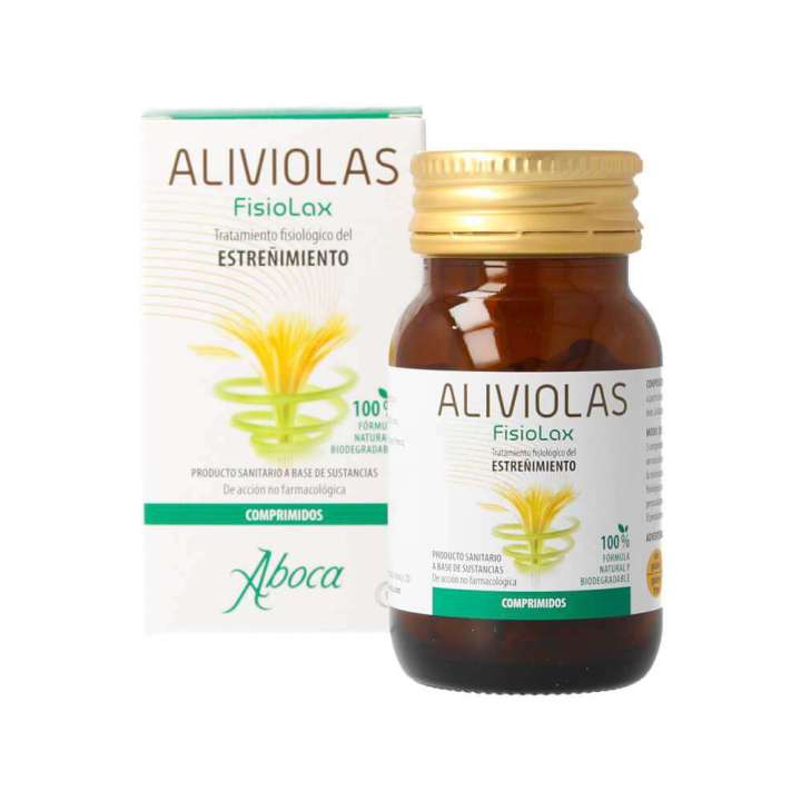 Aliviolas Fisiolax es un producto sanitario 100% natural indicado para el tratamiento del estreñimiento. Se presenta en formato comprimidos para tomar junto con un vaso de agua o zumo.
