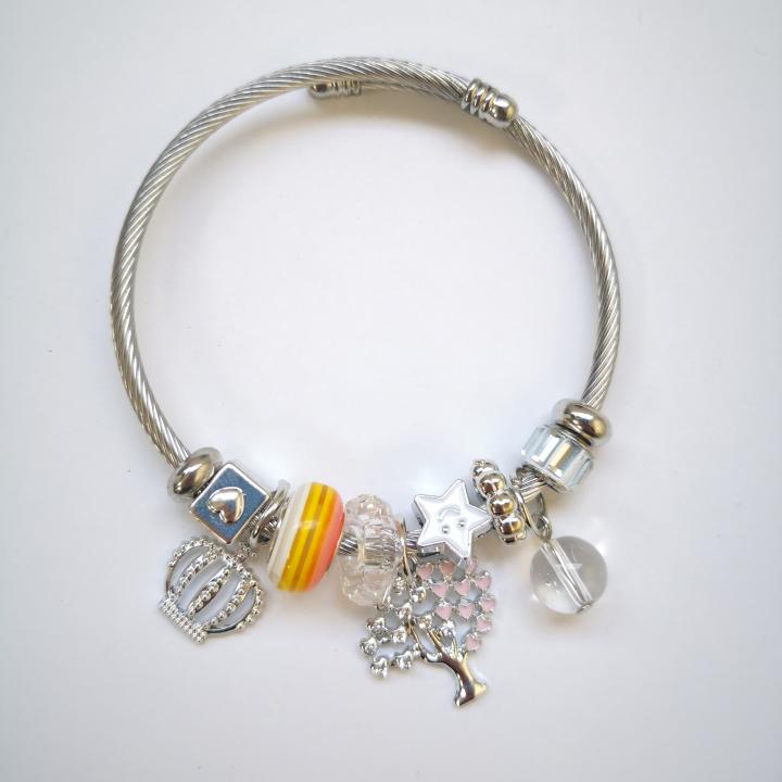 Pulsera de Acero Inoxidable con Charms de Diseño Exclusivo