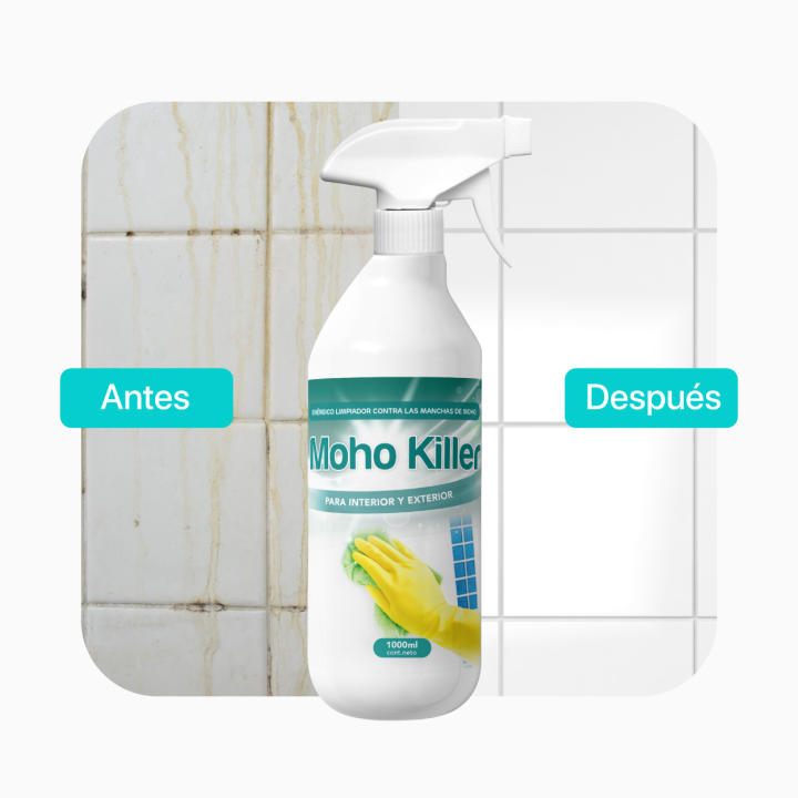 - ➡️ FORMULA EN 1 LITRO ANTI MOHO EN UN SOLO PASO - LIMPIA Y PREVIENE LA APARICIÓN Con el spray antimoho MOHO KIILLER, con una sola aplicación, verás desaparecer EN MINUTOS cualquier vestigio de moho y hongos. Perfecto para todo tipo de superficies , yeso,microcementos , siliconas, azulejos , suelo, manparas, techo, etc.. A diferencia de la utilización de lejía nuestra fórmula es mucho más eficaz y duradera.