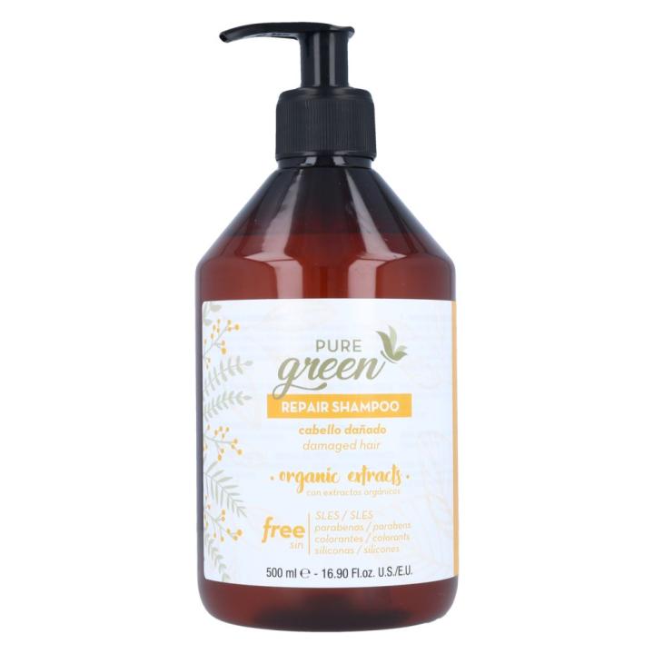 Este champú reparador Pure Green contiene ingredientes naturales que nutren y reparan el cabello. Con aceite de oliva ecológico, queratina, aceite de argán y extracto de células madre vegetales, fortalece y restaura tu cabello. Úsalo en cabello húmedo, masajeando suavemente y luego enjuágalo para obtener un cabello saludable y brillante.