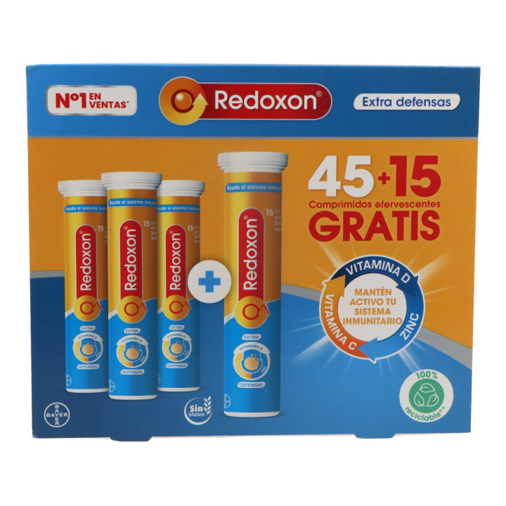 Contenido de la etiqueta de nutrición<h3>Descripción Larga</h3> <p>Impulse su sistema inmunológico con el Redoxon 45+15 Comprimidos Promo. Este vitaminico de la reconocida marca Prim, está diseñado para proporcionarte un refuerzo adicional de vitamina C, esencial para mantener nuestra salud y bienestar. Este complemento está hecho para proporcionarte la cantidad diaria recomendada de vitamina C para ayudar a tu sistema inmunológico a funcionar correctamente. Perfecto para todas esas personas con un estilo de vida acelerado que necesita un extra de energía y protección. Además esta oferta incluye una promoción de 15 comprimidos adicionales, para que no te quedes sin tu dosis diaria de salud y vitalidad.</p> <h3>Composición del Producto</h3> <p>La fórmula de este producto incluye vitamina C (ácido ascórbico). Cada comprimido de Redoxon contiene la cantidad diaria recomendada de vitamina C. Además tiene ingredientes adicionales que facilitan la absorción de la vitamina en el organismo.</p> <h3>Modo de Empleo</h3> <p>Tomar un comprimido de Redoxon al día. Los comprimidos se deben disolver en agua para crear una refrescante bebida con sabor a naranja. No se recomienda superar la dosis diaria recomendada.</p> <h3>Advertencias</h3> <p>Los suplementos vitamínicos no deben utilizarse como sustitutos de una dieta equilibrada. Mantener fuera del alcance de los niños. Si está embarazada, lactando, tiene alguna enfermedad o está tomando alguna medicación, consulte a su médico antes de tomar cualquier suplemento. Almacenar en un lugar fresco y seco.</p> | Ingesta diaria recomendada<h3>Descripción Larga</h3> <p>Impulse su sistema inmunológico con el Redoxon 45+15 Comprimidos Promo. Este vitaminico de la reconocida marca Prim, está diseñado para proporcionarte un refuerzo adicional de vitamina C, esencial para mantener nuestra salud y bienestar. Este complemento está hecho para proporcionarte la cantidad diaria recomendada de vitamina C para ayudar a tu sistema inmunológico a funcionar correctamente. Perfecto para todas esas personas con un estilo de vida acelerado que necesita un extra de energía y protección. Además esta oferta incluye una promoción de 15 comprimidos adicionales, para que no te quedes sin tu dosis diaria de salud y vitalidad.</p> <h3>Composición del Producto</h3> <p>La fórmula de este producto incluye vitamina C (ácido ascórbico). Cada comprimido de Redoxon contiene la cantidad diaria recomendada de vitamina C. Además tiene ingredientes adicionales que facilitan la absorción de la vitamina en el organismo.</p> <h3>Modo de Empleo</h3> <p>Tomar un comprimido de Redoxon al día. Los comprimidos se deben disolver en agua para crear una refrescante bebida con sabor a naranja. No se recomienda superar la dosis diaria recomendada.</p> <h3>Advertencias</h3> <p>Los suplementos vitamínicos no deben utilizarse como sustitutos de una dieta equilibrada. Mantener fuera del alcance de los niños. Si está embarazada, lactando, tiene alguna enfermedad o está tomando alguna medicación, consulte a su médico antes de tomar cualquier suplemento. Almacenar en un lugar fresco y seco.</p> |