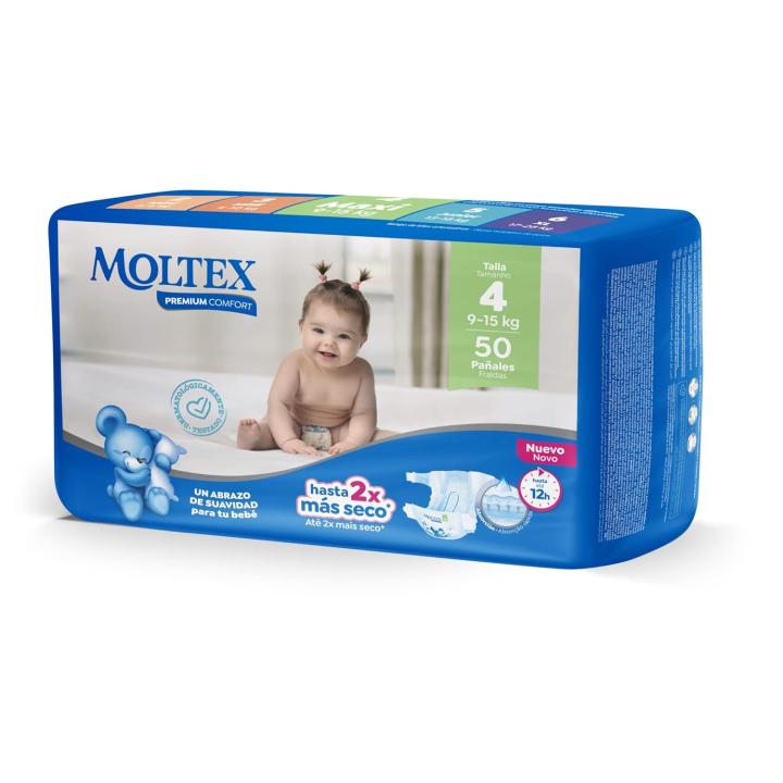 MOLTEX Premium pañales system channel protect 9-15 kgs talla 4 paquete 50 uds