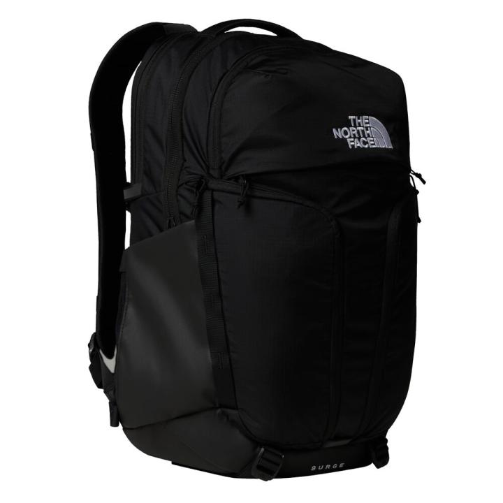 Mochila Negra The North Face SurgeDETALLESDiseño amplio: dispone de mucho espacio interior para llevar efectos personales imprescindibles para pasar el día.¿Pasas muchas horas de un lado para otro? Entonces, la mochila Surge está hecha para ti. Para empezar, está fabricada en tejido antidesgarros de alta resistencia de nailon reciclado para aguantar todo lo que la eches. Incorpora correas moldeadas para los hombros, panel trasero acolchado y sistema de suspensión FlexVent™ para que la puedas llevar de forma cómoda, incluso cuando vaya cargada a tope. Presume de una capacidad de 31 litros, con un compartimento principal muy amplio, un compartimento frontal con funda acolchada para guardar una tableta y bolsillos con cremallera y una funda para llevar el portátil. Además, si te gusta salir de ruta los fines de semana, el cinturón lumbar desmontable, la correa para el esternón y los dos bolsillos exteriores para botellas de agua son detalles más que prácticos. Tejido De La Parte De Los Colores Lisos : Tejido Antidesgarros De Alta Resistencia De Nailon Reciclado De 210D Con Acabado Hidrófugo Duradero (DWR) Sin Perfluorocarburos (PFC) Tallas : Talla Única Modelo: 52SG Tejido Del Diseño Jaspeado : Poliéster Reciclado Jaspeado De 300D Con Acabado Hidrófugo Duradero (DWR) Sin Perfluorocarburos (PFC)CARACTERÍSTICAS El sistema de suspensión actualizado FlexVent™, certificado por la Asociación Americana de Quiropráctica, tiene correas articuladas para los hombros, un panel trasero redondeado, pespuntes cómodos y tejido de camisa suave Tres bolsillos grandes con cremallera de fácil acceso en la parte delantera y mucha organización Diseño que se mantiene de pie sin caerse Compartimento protector para llevar el portátil Compartimento principal muy amplio para llevar libros y carpetas Compartimento frontal con organización interna, bolsillos con cierre de cremallera y una funda acolchada para llevar la tableta Bolsillo exterior con interior de forro polar para llevar las gafas de sol, el móvil o las llaves Dos bolsillos externos para llevar botellas de agua, que también se pueden usar como bolsillos multiuso con acceso rápido al móvil en un lateral de la mochila Dos bolsillos externos con cremallera en J, uno de ellos con interior forrado de felpa Sistema de compresión en la base Cinta probadora como elemento auxiliar o punto de anclaje Asa superior acolchada y cómoda Correa para el esternón con hebilla y silbato Cinturón lumbar desmontable Disponible una versión adaptada a la anatomía femenina Reflectividad de 360 grados