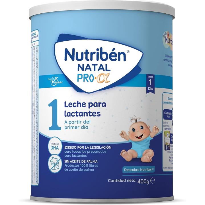 Nutribén Natal es una leche de inicio para lactantes desde el primer día hasta el 6º mes. Formato de 400g. Contiene el paraprobiótico BPL1, que ayuda a prevenir la obesidad infantil y DHA que ayuda a la maduración del sistema nervioso central. También está enriquecido con nucleótidos, que favorecen el desarrollo del sistema inmunológico del bebé y la maduración del tracto gastrointestinal y la proteína alfa-lactoalbúmina, que es mayoritaria de la leche materna y previene la sobrecarga renal. No contiene aceite de palma y contiene una mezcla de grasa láctea y aceites vegetales que nos permite mejorar el sabor y olor de las fórmulas, mejorando el perfil de ácidos grasos. Los productos Nutribén son nacionales, elaborados en la planta de Madrid. Es una de las fábricas de fórmulas infantiles más modernas, que cuenta con la tecnología para garantizar los máximos estándares de calidad.
