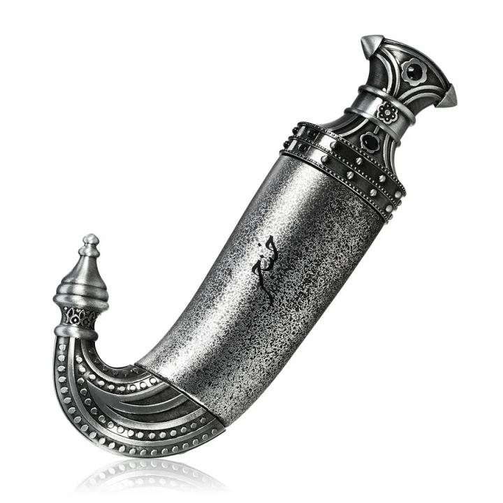 Finalmente, Khanjar se asienta en una base profunda y sensual de 🌲 vetiver, 🕯️ incienso, almizcle y cuero 👜, dejando una estela envolvente que perdura en la piel, como una caricia suave y aterciopelada.
