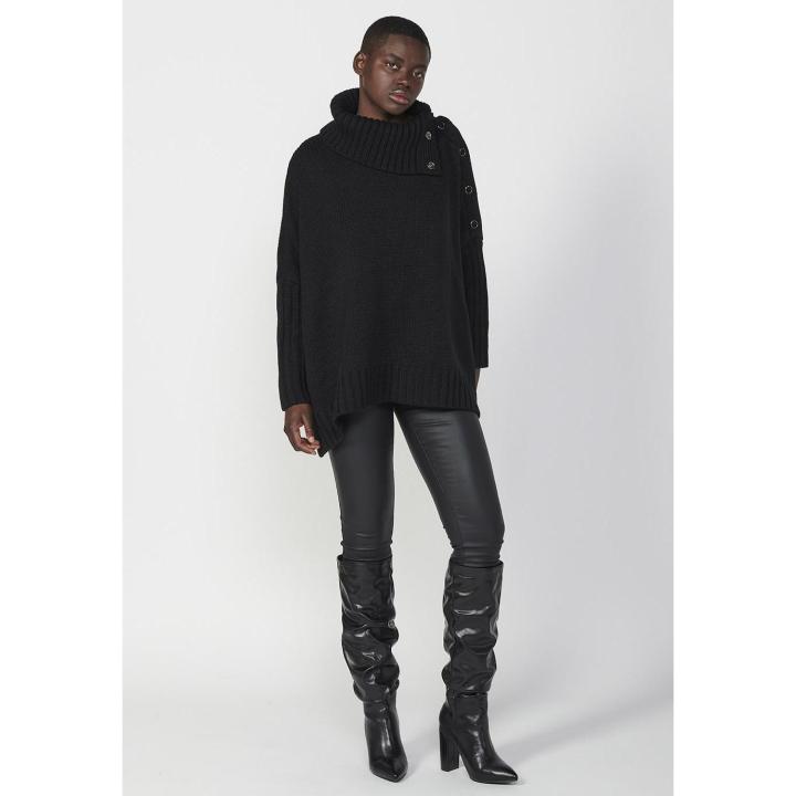 Jersey manga larga con cuello vuelto y abertura lateral para mujer. Diseño minimalista que combina calidez con un toque contemporáneo. El cuello vuelto proporciona un acabado clásico, mientras que la abertura lateral añade un detalle de diseño diferenciador. Prenda versátil y esencial para un guardarropa moderno.