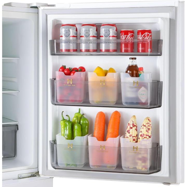CAJA DE ALMACENAMIENTO MULTIFUNCIONAL: Puede colocarla en la puerta del refrigerador para almacenar frutas, verduras, bolsitas de té y productos lácteos. También puede usarlo para guardar vajillas, pinceles de maquillaje, suministros de oficina, etc. en el gabinete de la despensa de la encimera de la cocina.