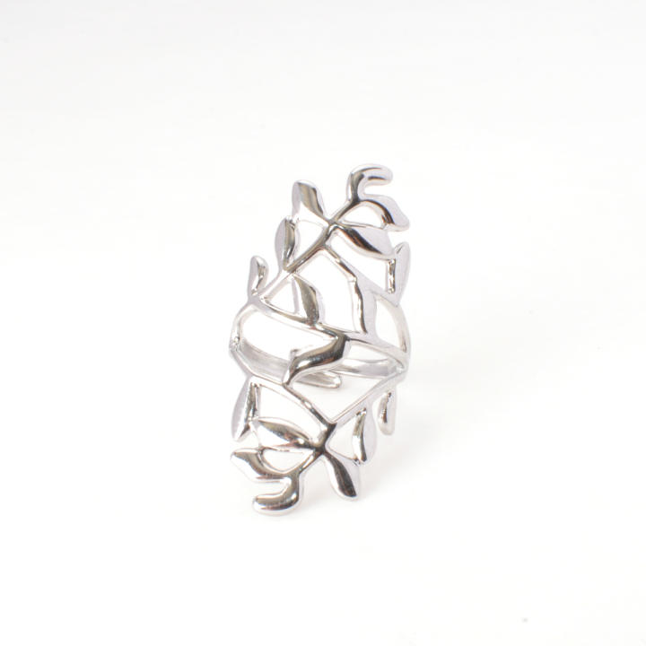 Descripción: Este anillo plateado presenta un diseño inspirado en la naturaleza, donde ramos de árbol entrelazados crean una estructura elegante y única. El diseño es detallado y delicado, lo que hace que este anillo sea una pieza llamativa y sofisticada.