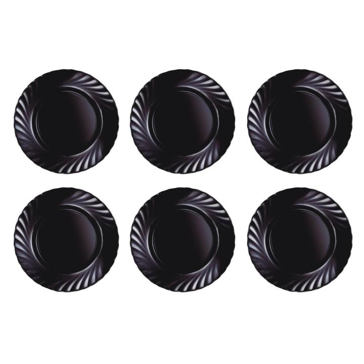 Juego de 6 Platos llanos 245cm vidrio Trianon Negro Luminarc