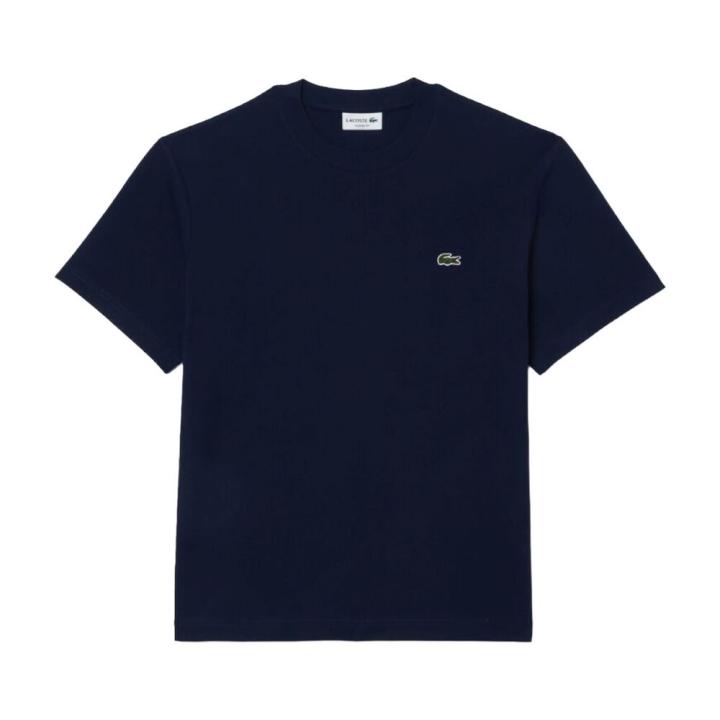Camiseta Azul Marino Lacoste de Corte Clásico de Punto de Algodón DescripciónReferencia TH7318-00La atemporal camiseta Lacoste se renueva con un tejido supercómodo de peso medio. Esencial y versátil, combina con todo, y viene acabado con el emblemático cocodrilo. Peso: 180 g/m² Cuello redondo con capucha Ajuste cómodo y clásico Cocodrilo bordado en el pecho Algodón (100%)Medidas del modelo El modelo mide 1m85 y lleva una talla 4 - M