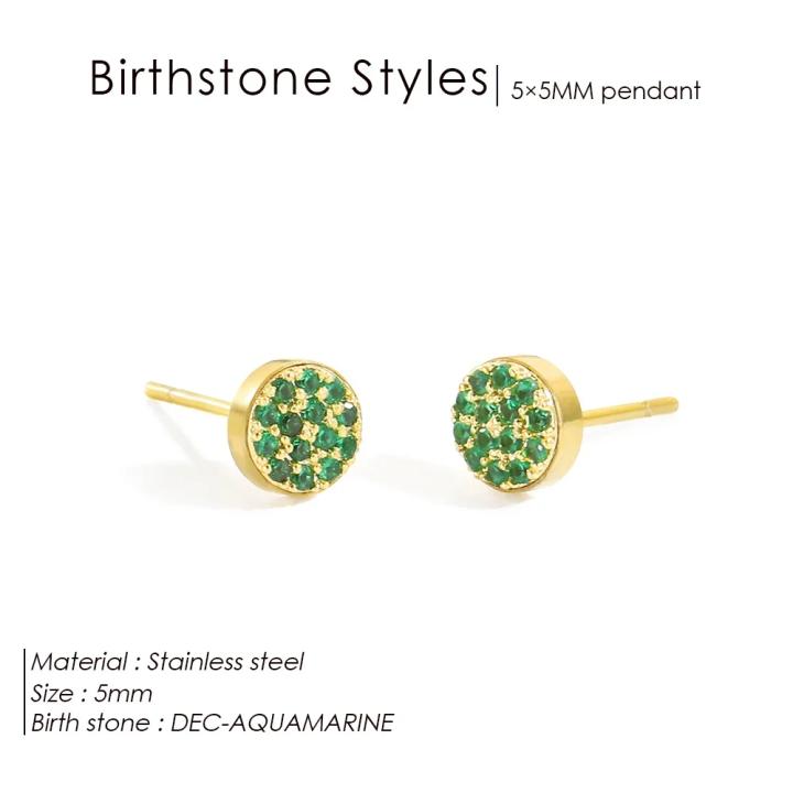 Pendientes perforados de circonita, joyas de acero inoxidable, piedra natal