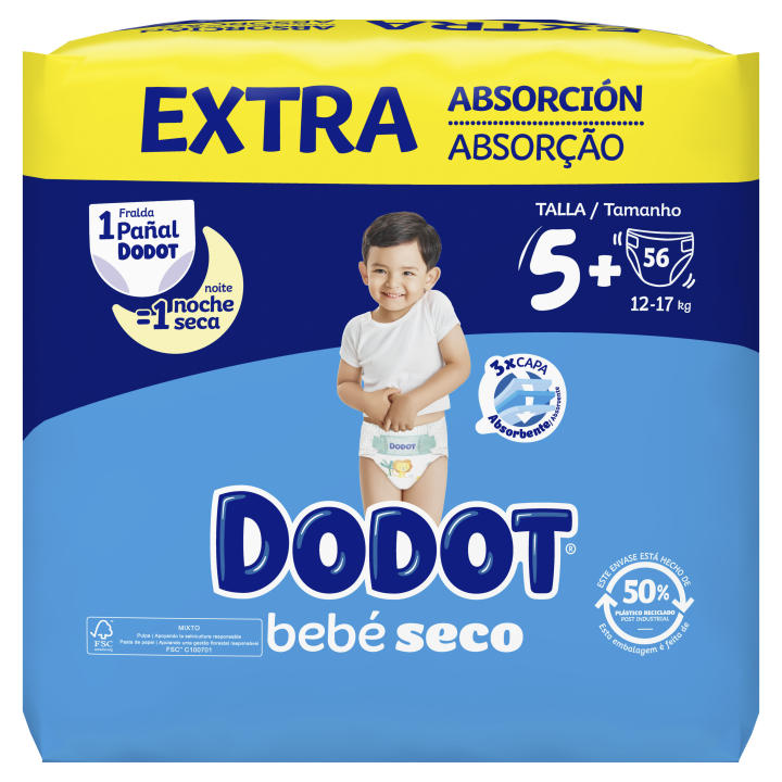 Pañales Dodot Talla 5+ - 56 Pañales - De 12 a 17 kg.