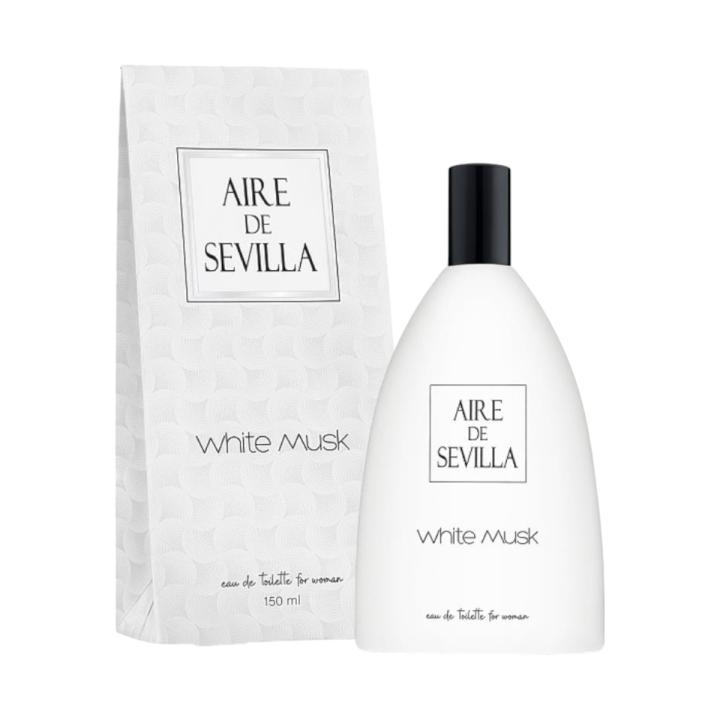 - Aire de Sevilla White Musk, una rfragancia floral, fresca, femenina y limpia, combina notas de aldehído, jazmín, lirio