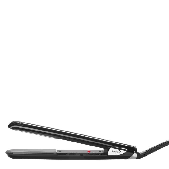 Plancha alisadora con placas basculantes de titanio con acabado espejo - hilo de contacto roto multidireccional - refinado acabado lacado negro.