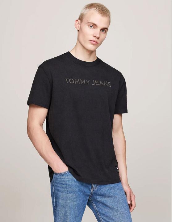 Camiseta Tommy Jeans Logo Patch Negra Hombre Dm0dm19737pub Negro